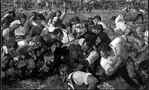 Cada equipo se componía de 25 jugadores, y el objetivo del juego era patear el balón en la zona de anotación del rival.